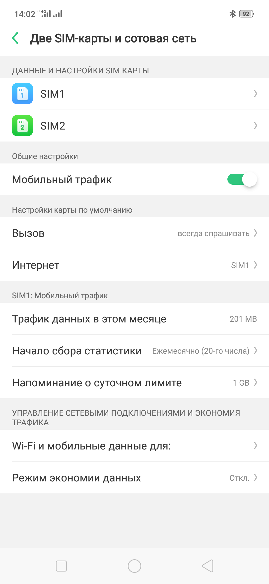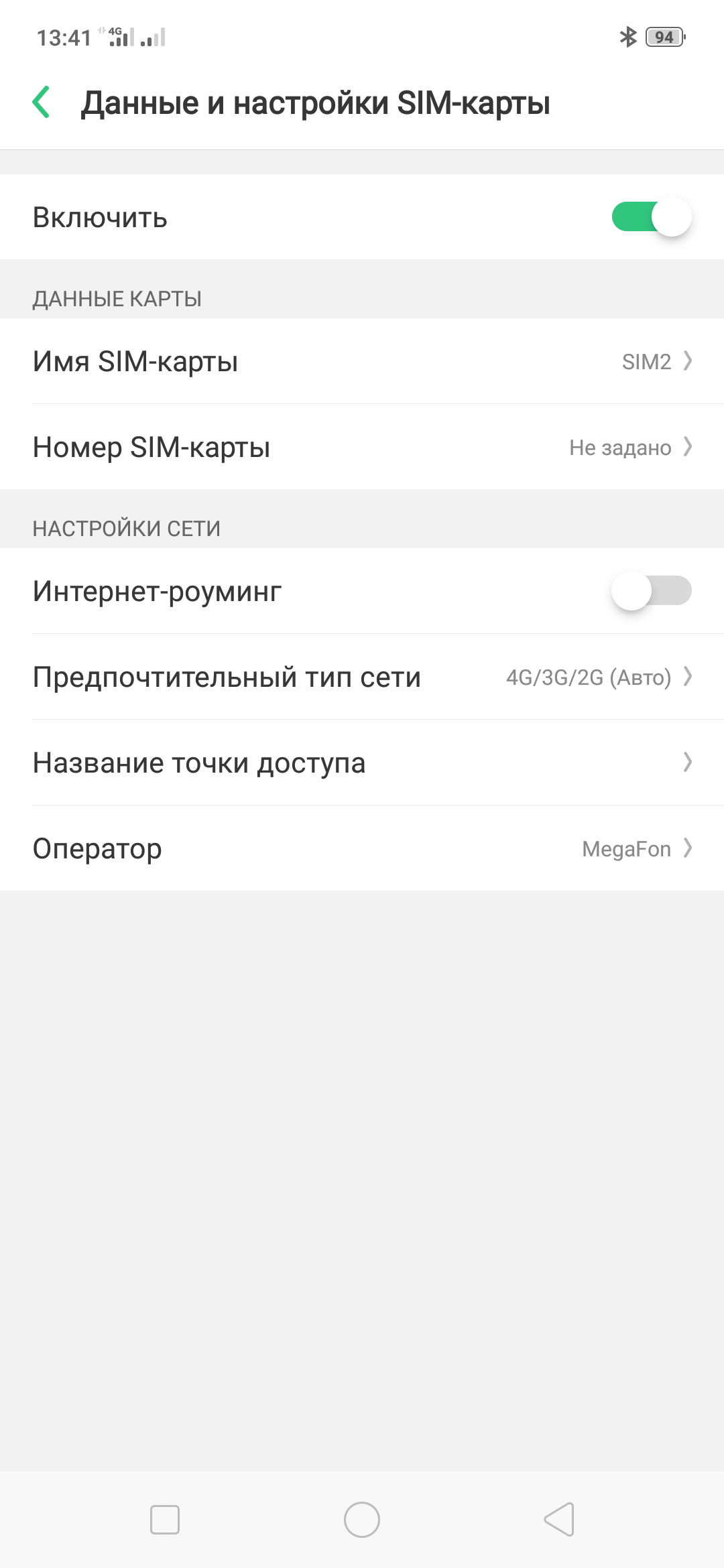 Доступны все стандартные для «двухсимочности» настройки.