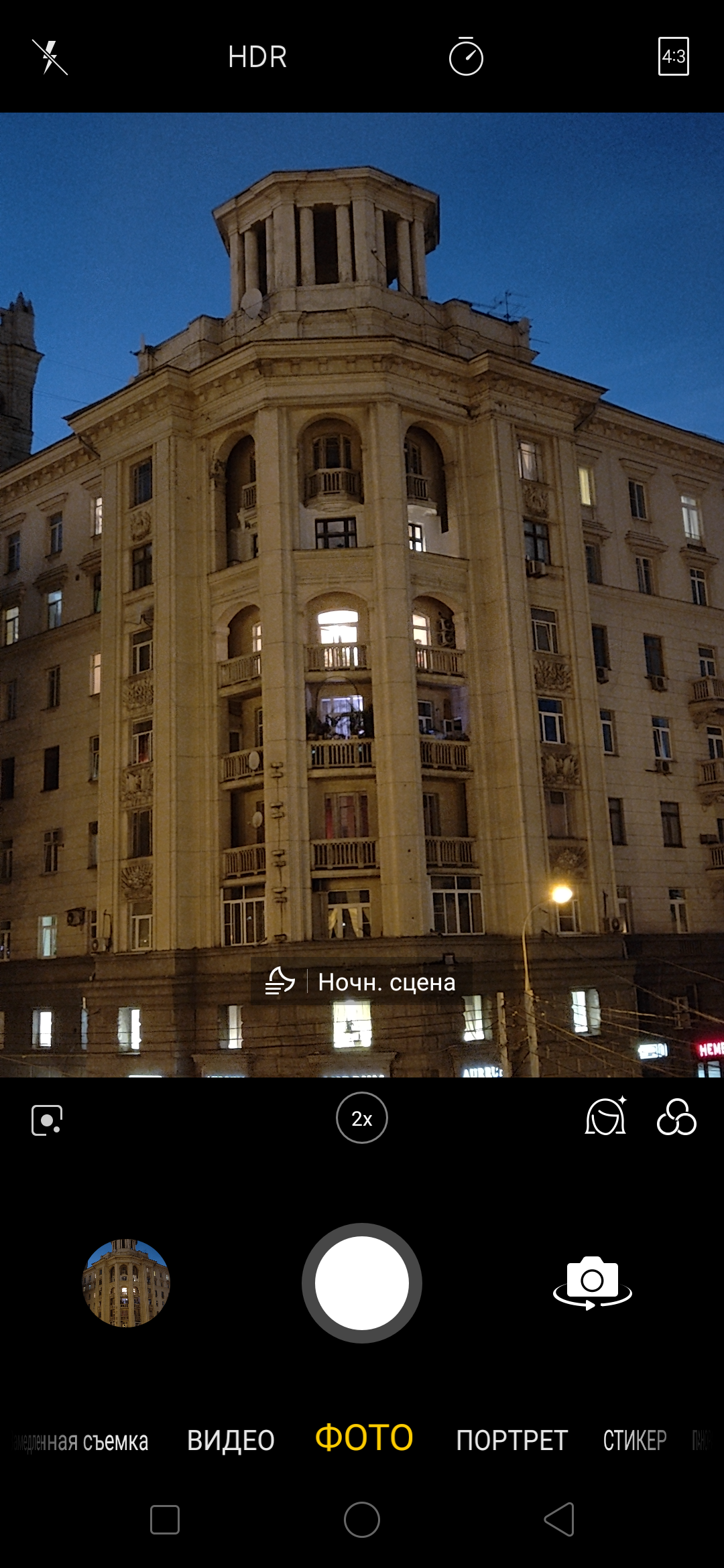 Ну, честно говоря, могло быть лучше, особенно светосила линз. Да и вторая камера не обеспечивает аппаратный зум. Он здесь что-то типа гибридного: данные со второго сенсора вроде бы используются, но основной является кропнутая картинка с первого. В общем, надо смотреть, как это все снимает. Как раз камера уже запущена...