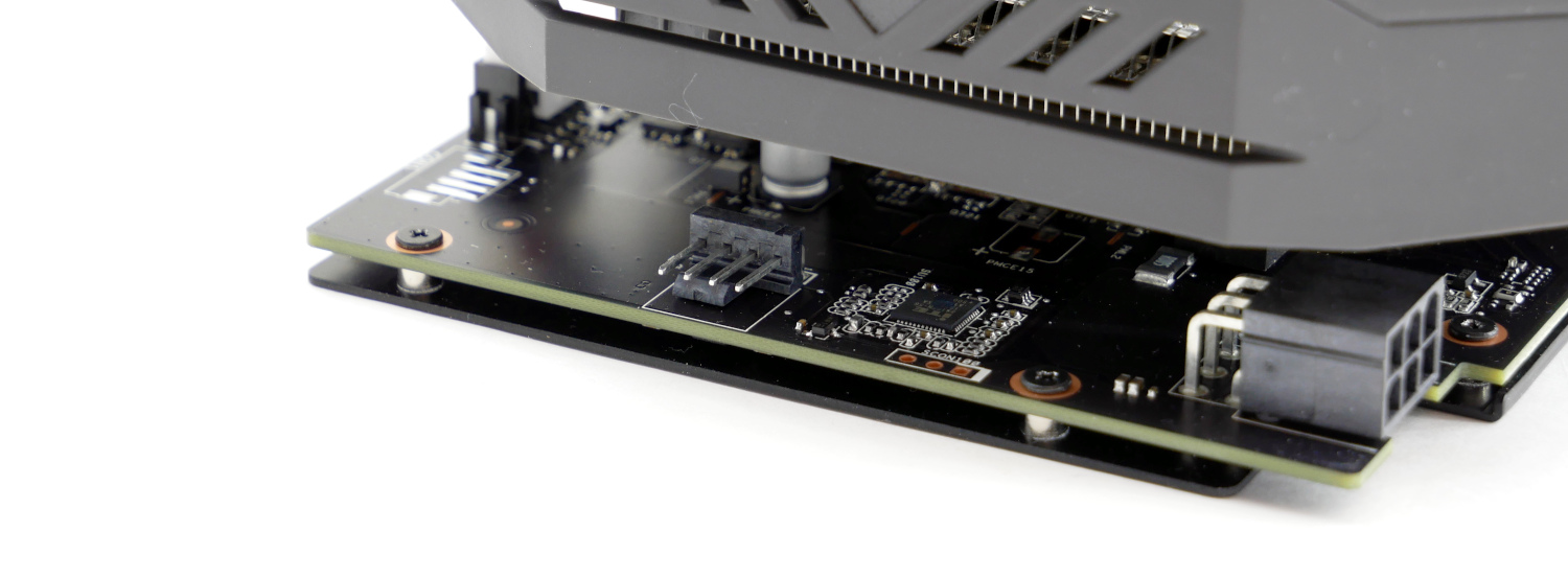 Дополнительное питание ASUS ROG Strix GeForce GTX 1650 Super осуществляется единственным 6-pin коннектором. Потребление видеокарты составляет 110 Вт с возможностью расширения лимита до 132 Вт: это положительно отражается на разгонном потенциале.