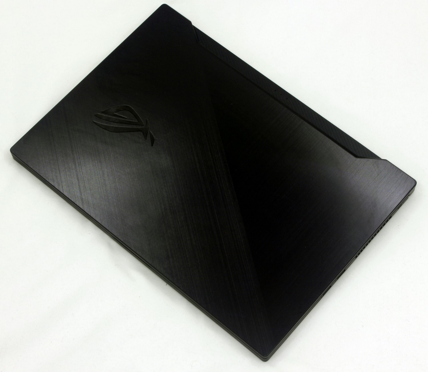 Верхняя крышка украшена шлифовкой и логотипом ROG. Темное цветовое оформление хорошо сочетается с общей концепцией ноутбука.