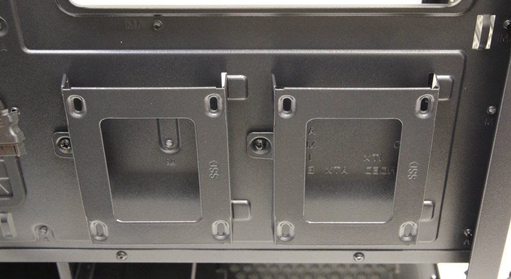 Еще два накопителя 2.5” можно установить на внутренней панели. Для этого предусмотрены специальные монтажные устройства.