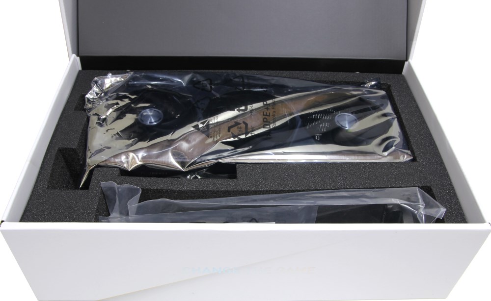 Далее всё стандартно: каркас из вспененного полиэтилена, где в антистатическом пакете зажата видеокарта. Ниже есть отсек, где упакованы части комплекта поставки. Если быть точнее, то это поддерживающая карту штанга и легендарный переходник 12VHPWR.