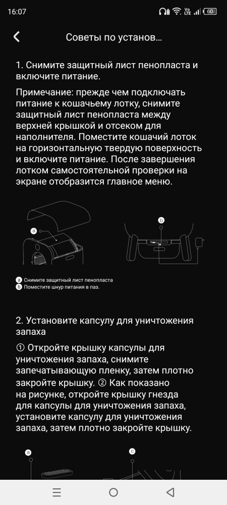 Устройство очень прочное, надёжное и простое в использовании. В приложении есть множество подсказок по уходу за животным, по его приучению к лотку, а также несколько разных режимов: для взрослых котов, котят и беременных кошек. Подсказки помогут пользователю легко и быстро разобраться с функционалом и особенностями работы данного устройства. Также есть система уведомлений о заполнении лотка отходов, о недостаточном уровне наполнителя или необходимости замены контейнера с дезодорантом.