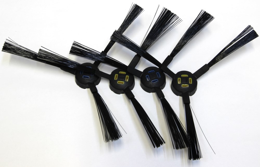 Ещё в комплекте есть два комплекта боковых щёток, пульт управления, специальная щётка для чистки устройства и две элемента ААА для пульта.