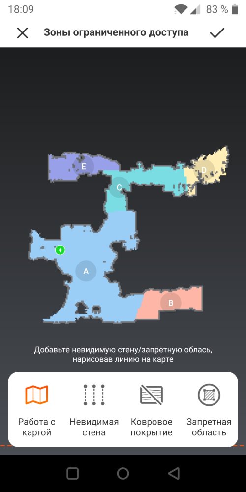 Ещё можно настроить ограничительные зоны, которые больше напоминают виртуальные стены, за которые робот не будет заезжать.