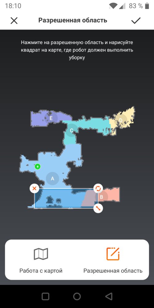 Есть обратная функция, где, наоборот, можно задать область уборки. Пылесос будет совершать операции только на этом участке. Это очень удобно, когда нужно какую-то область вымыть отдельно после сухой уборки.