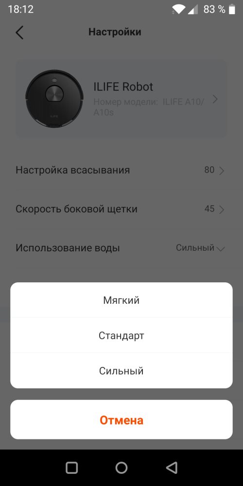 Кстати, в программе можно изменить не только язык интерфейса, но и голосового сопровождения устройства. Устройство может сообщать о том, что оно собирается предпринять. Громкость сигналов и команд тоже регулируется, но даже на максимальной громкости получается не очень чётко. Высокий женский голос что-то быстро произносит, и робот начинает уборку. В этот момент только начинаешь понимать сказанное, как процесс уже пошёл. Когда засорилась щётка, и она через 10 секунд постоянно что-то повторяла, то я думал: что она хочет? Сам английский знаю сносно, возможно, всё дело в интонации, тембре или скорости проговаривания. В идеале, конечно же, хотелось бы услышать родную речь, но пока в этом плане подвижек нет.