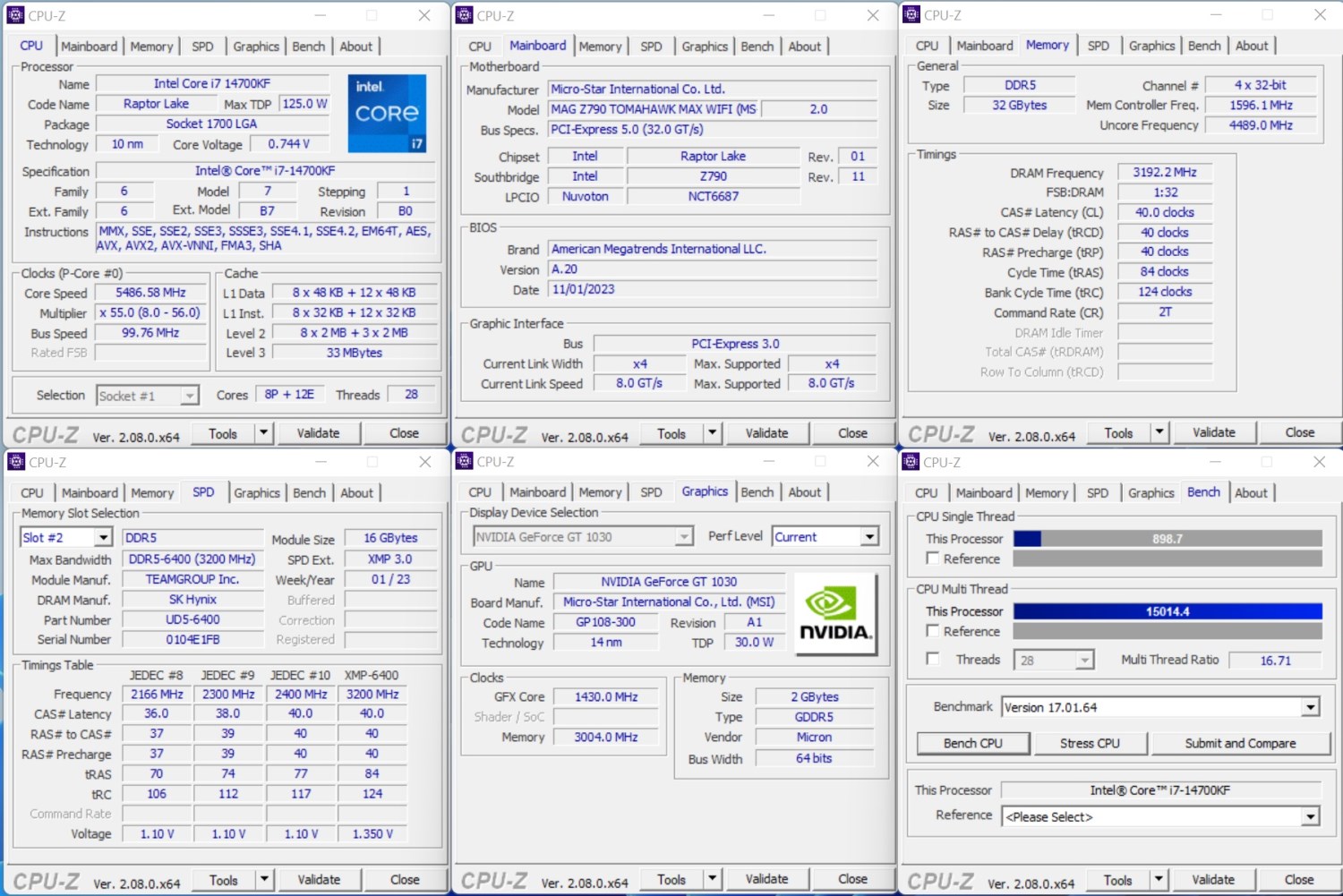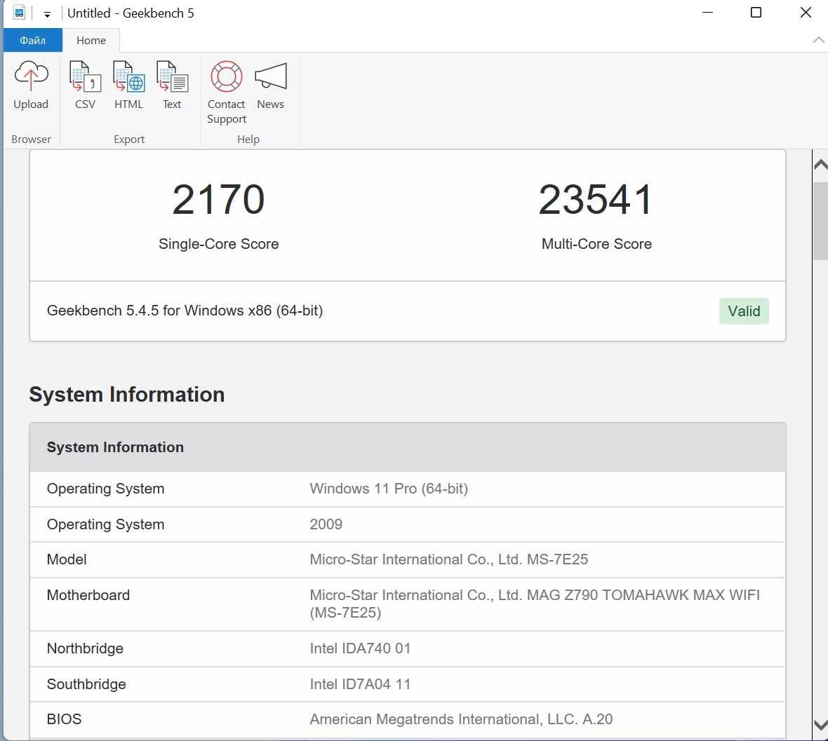 - Материнская плата: MSI MAG Z790 Tomahawk MAX WIFI, версия BIOS – H.20;