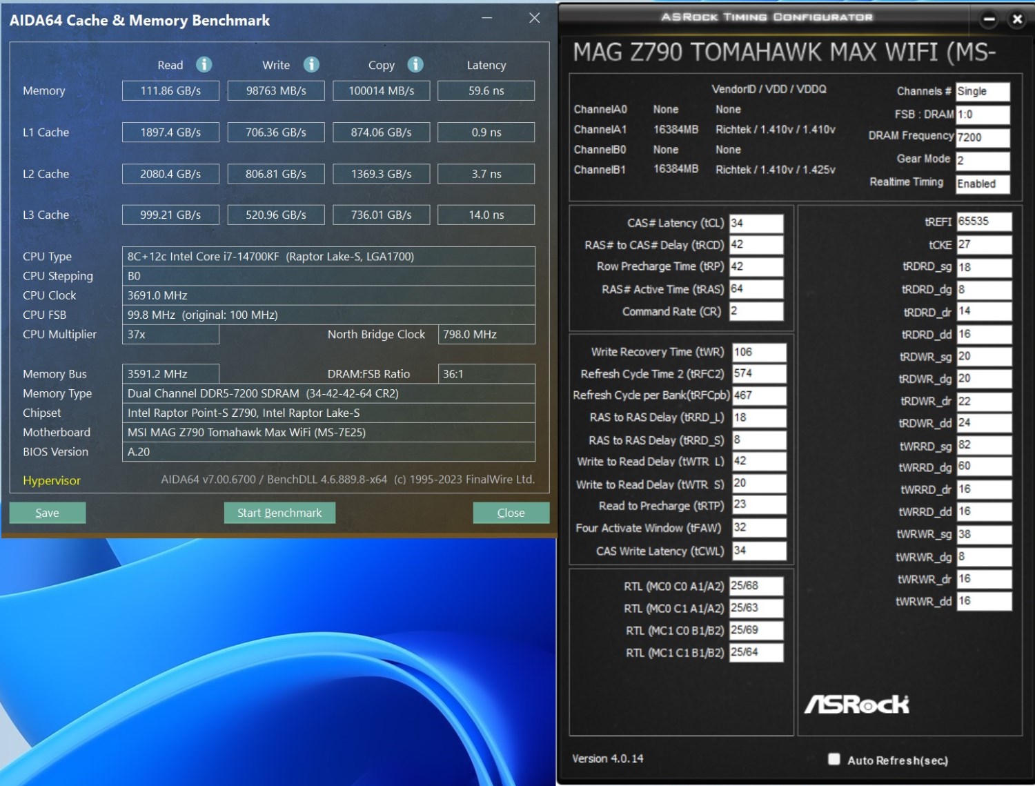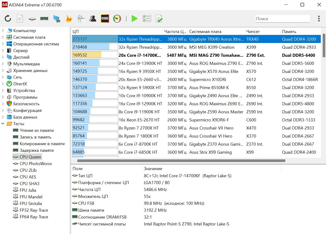- Процессор: Intel Core i7-14700KF;