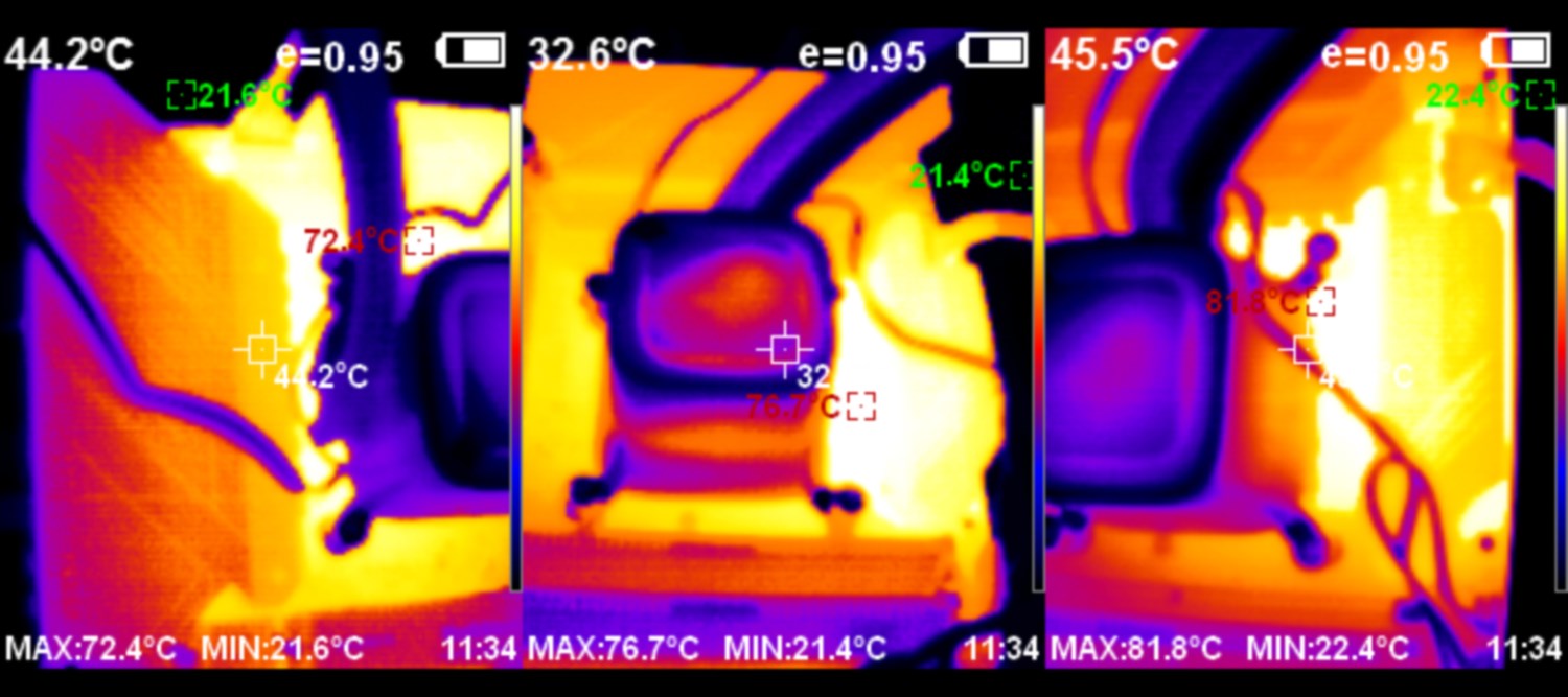 Далее подошел черед Prime95 и тепловизора. Температуры стандартны для подобной сборки.