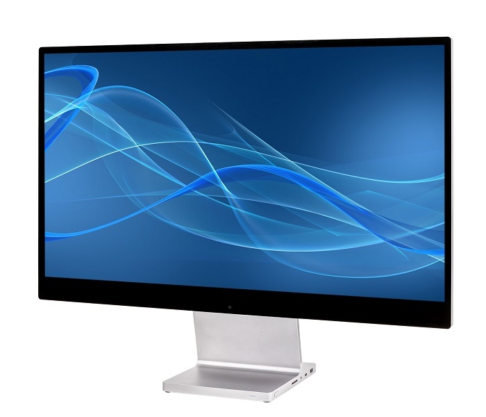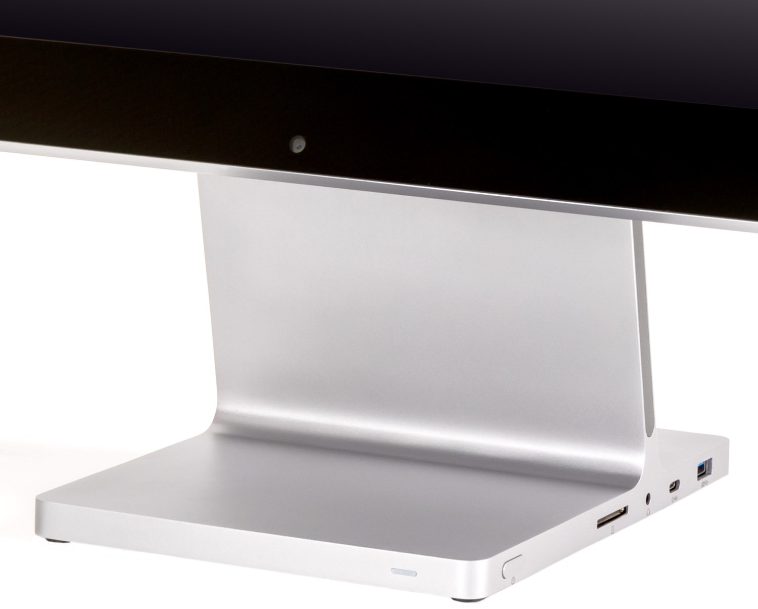 Моноблок смотрится круто и этому есть объяснения. Начнём с того, что корпус и подставка выглядят монолитно и изготовлены из анодированного алюминия и окрашены в серый цвет. Прибавим к этому глянцевое стекло на экране. Смотрится не хуже iMac 27”, а может даже лучше, но тут уже дело вкуса.