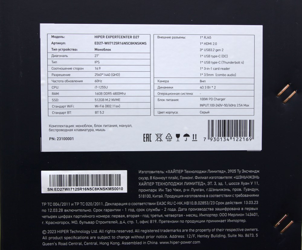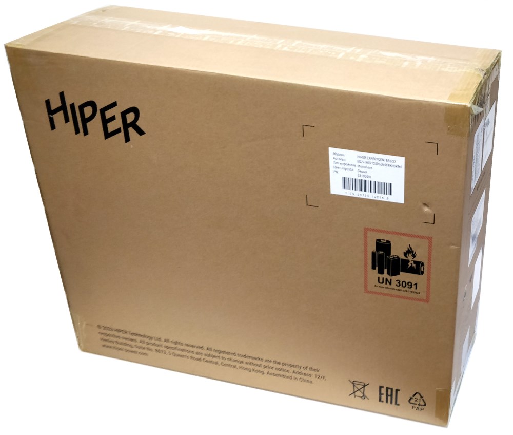 Моноблок поставляется в крупной картонной коробке, которая предназначена для транспортировки. Практически с каждой стороны есть наклейки с указанием модели и артикула устройства.