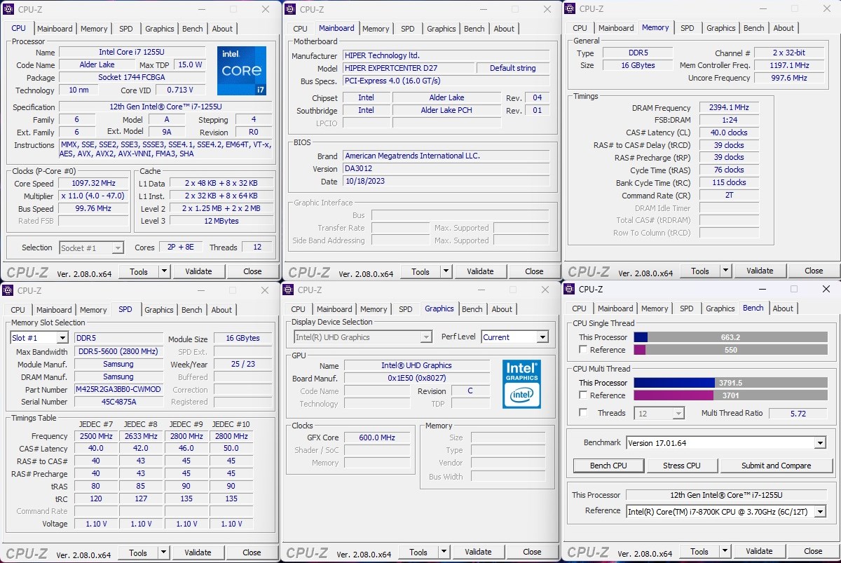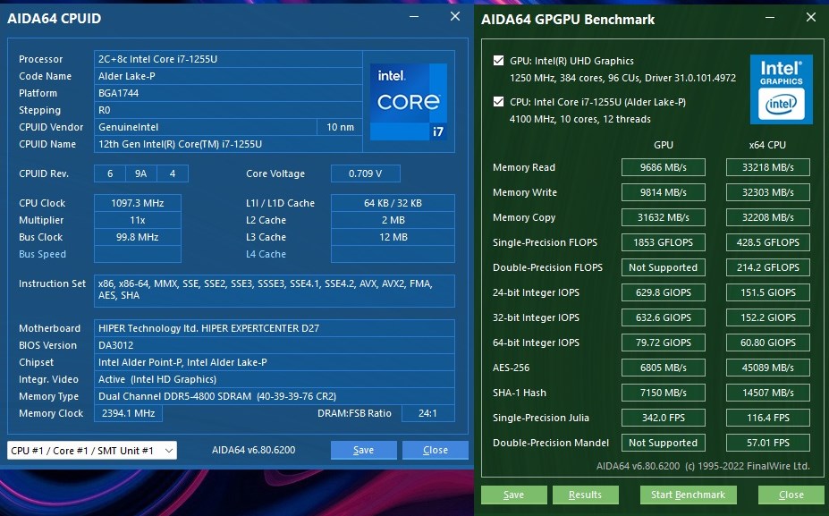| Процессор | Intel Core i7-1255U 10C/12T, BGA1744, 15 Вт |