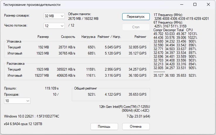 Понятно, что это синтетика и в реальных условиях аналогичной нагрузки не добиться. Такое возможно, если «24/7» кодировать видео или постоянно архивировать, но не думаю, что этим кто-то будет серьезно заниматься на данном компьютере.