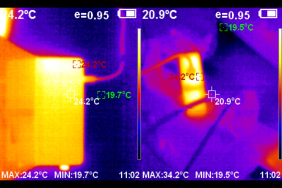 Что касается нагрева, то здесь все очень хорошо. Для наглядности я решил продемонстрировать работу устройства после длительной нагрузки Prime через тепловизор.