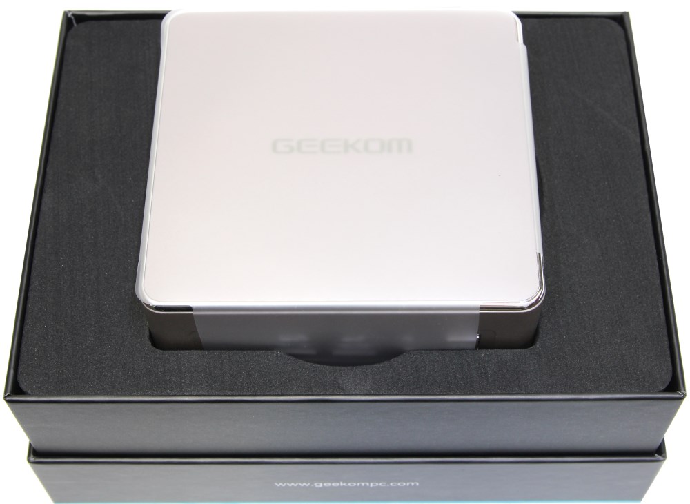 Нижняя крышка изготовлена из металла и окрашена в чёрный цвет. На верхней в очередной раз мы видим логотип Geekom.