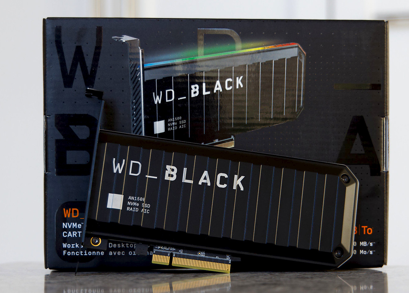 И вот возвращаясь к вопросу, что быстрее Samsung 980 Pro, компания Western Digital имеет в своем распоряжении ответ на этот вопрос - SSD накопитель WD Black AN1500 NVMe AIC. Ко мне попала в руки модель отъёмом 1 Тб. Данный PCI-e SSD использует 8 линий PCI-express 3-го поколения, а значит, его смело можно устанавливать во второй PCI-e х16 слот.