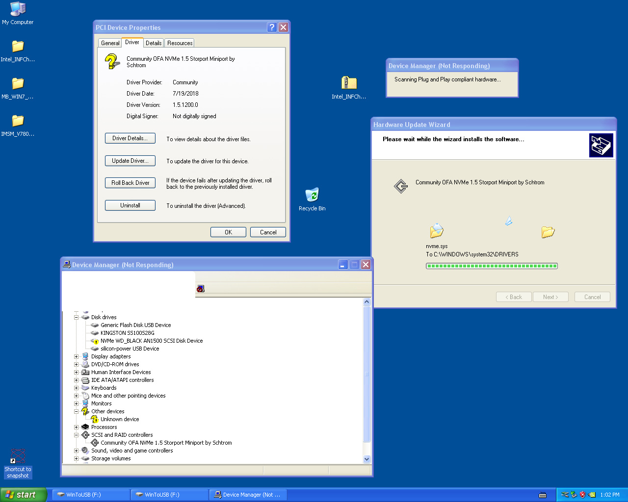 Однако заставить работать этот SSD в Windows XP, даже перепробовав установку со всеми доступными NVMe драйверами, мне не удалось.