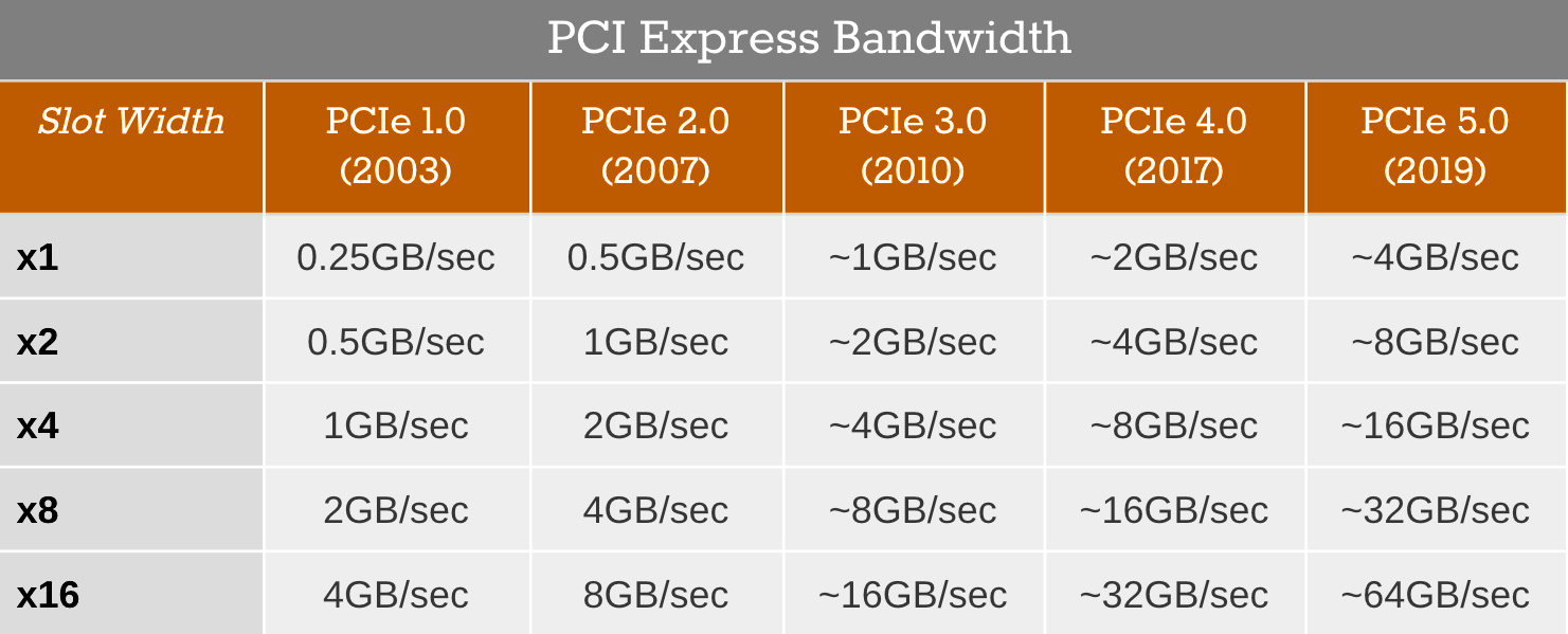 Чтобы наглядно понять о каких скоростях идет речь привету таблицу пропускной способности шины PCI-Express: