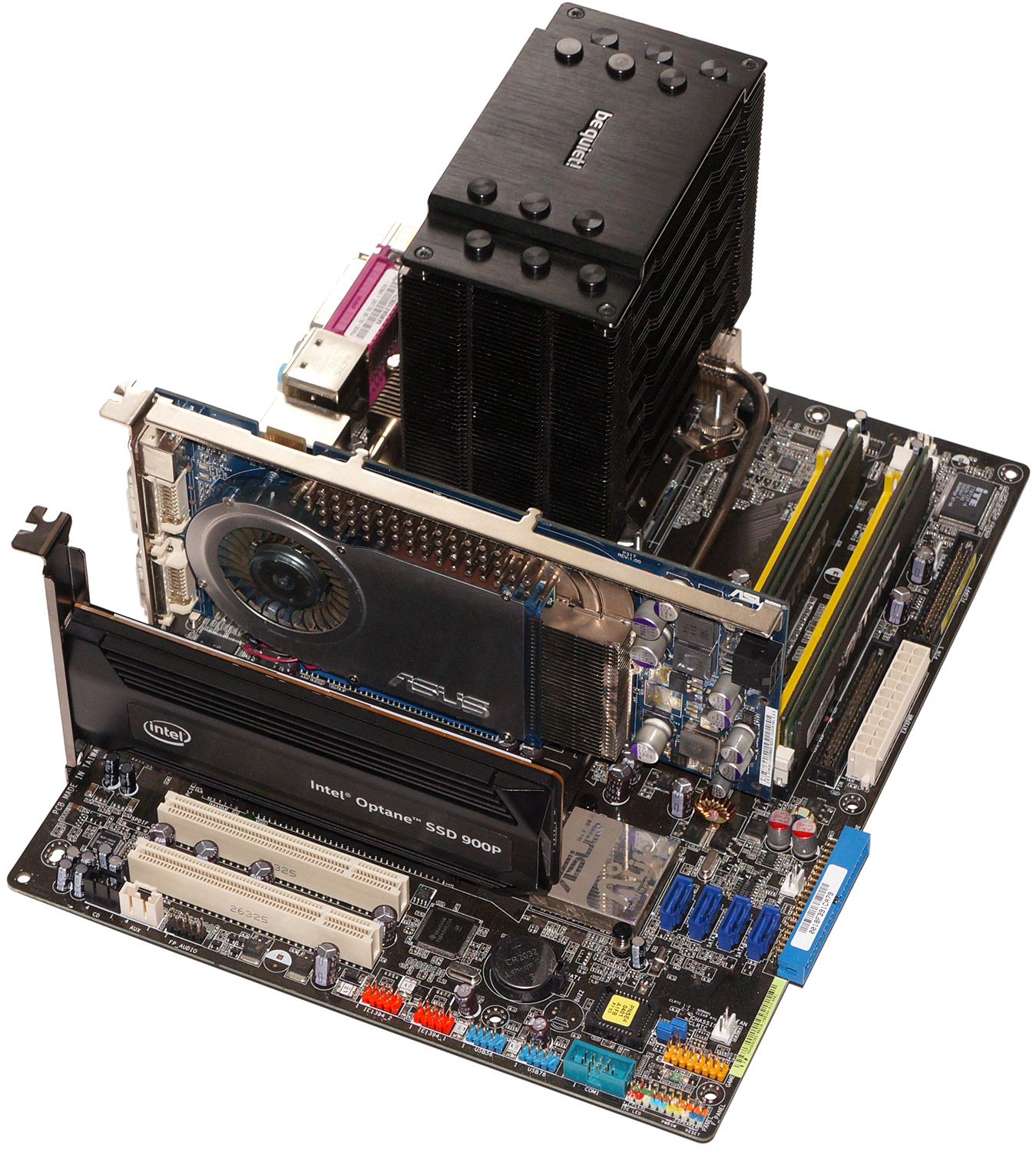 За прошедшие восемь лет много чего успело измениться. SSD де-факто уже считаются основным стандартом накопителей (даже для построения низкобюджетных сборок), а интерфейс SATA-III давно передал эстафету современному NVMe. Рамки ретро-систем плавно продолжают расширяться и уже одним краем зацепили ранние платформы на LGA 775, некогда считавшиеся вполне подходящими для офисных задач, либо для серфинга в интернете. Конечно, LGA 775 в полной мере еще рано относить к ретро-сегменту, но материнские платы с поддержкой первого поколения шины PCI-Express, процессорами Intel Pentium 4 и первого поколения Intel Core 2 Duo, уже слабо подходят для вышеназванных задач. И основа моего тестового стенда будет базироваться на одной из таких материнских плат.