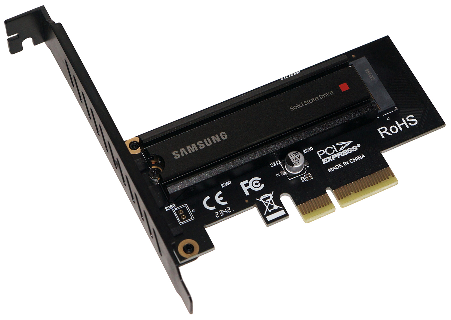 Вот мы подходим вплотную к дням сегодняшним. Чтобы получить максимальный результат в PCMark 2005, да и просто сделать, чтобы накопитель не был узким местом понадобится что-то современное и производительное. Мой выбор пал на проверенную временем модель – Samsung 980 Pro объёмом 1 Тб. Я приобрел версию с оригинальным радиатором и установил её в PCI-Express M2 SSD адаптер с четырьмя линиями PCI-Express.