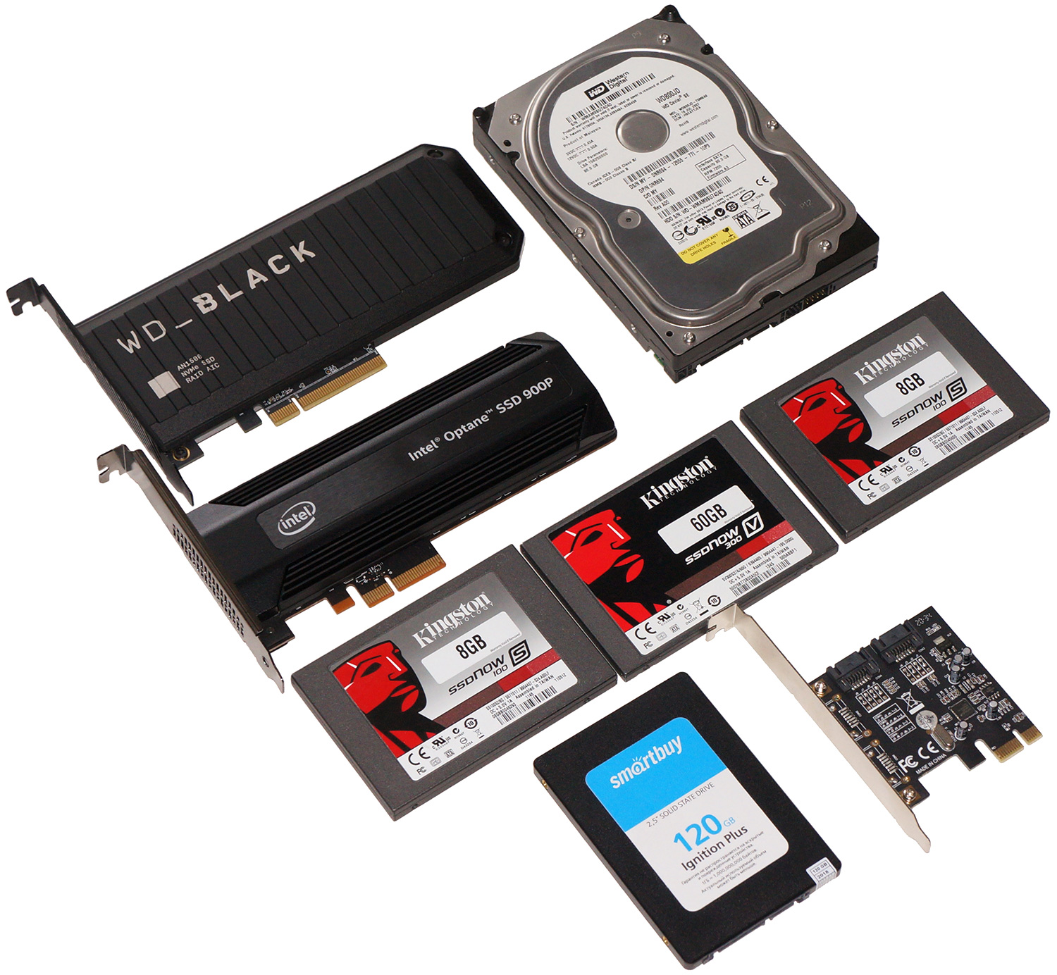 В далеком 2016-м году я уже делал попытку выяснить, какие HDD лучше подходят для использования в ретро-системах, и как выбор накопителей сказывается на результатах в PCMark 2004. Коллективное фото такого эксперимента представлено ниже, а саму статью можно найти по ссылке: Ретроклокинг: разгоняем HDD.