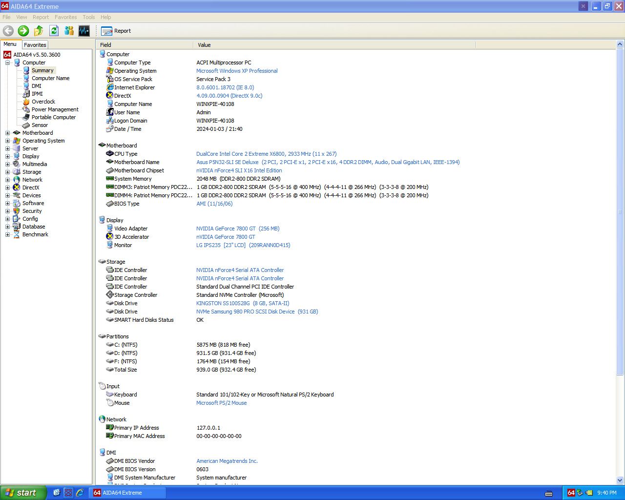 Данный SSD накопитель рассчитан на установку в материнские платы с поддержкой стандарта PCI Express 4.0 и способен в таких условиях выдавать скорости порядка 7000 Мб/с на чтение и 5000 Мб/с на запись. Чтобы проверить, как ему будет работаться на шине PCI Express 1.0, узнаем ниже в тестах. Стоит отметить, что просто так «подружить» NVMe SSD и Windows XP не получится, нужны специальные драйверы, ибо Windows XP знать не знает о существовании такого рода устройств. Желательно интегрировать все драйверы в дистрибутив Windows XP, но можно воспользоваться готовыми сборками, например Windows XP Professional SP3 X86 - INTEGRAL EDITION, которые можно найти на zone94.com.