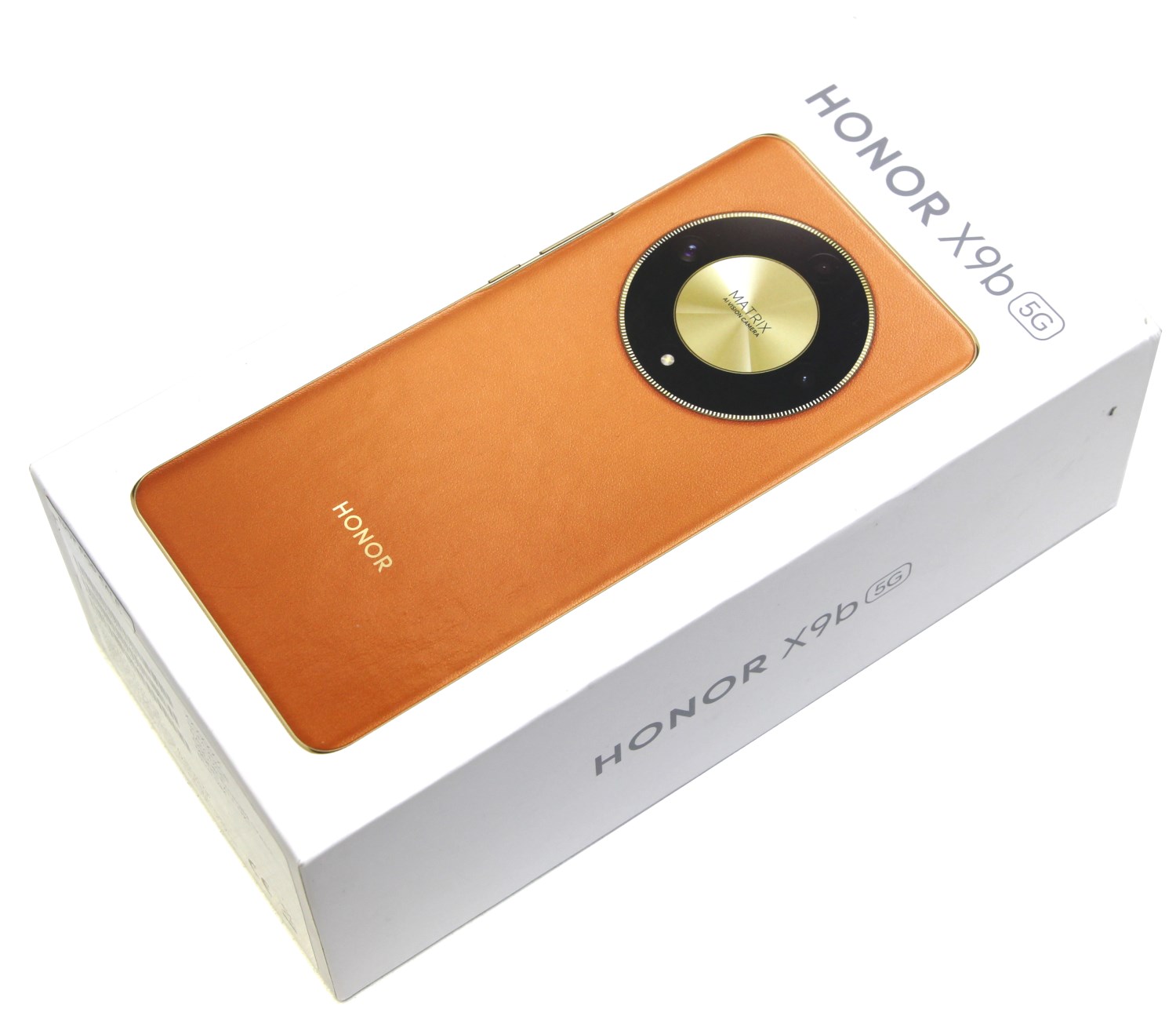 Упакован смартфон стандартно. Минималистичная коробка, сделанная из плотного и качественного картона, сверху которой есть изображение задней панели оранжевой версии устройства с надписью Honor X9b 5G.