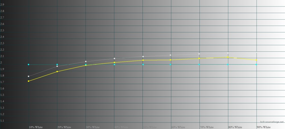Цветовая температура немного завышена – это делается для создания эффекта большей контрастности. Такая ситуация типична для подавляющего большинства современных дисплеев.