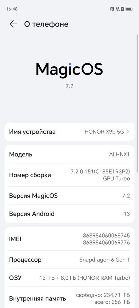 В качестве операционной системы выступает Google Android 13 с оболочкой производителя Magic UI 7.2.