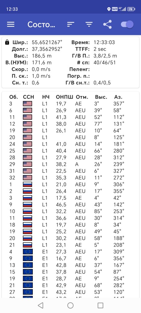 Со спутниковой навигацией также не возникло никаких сложностей. Устройство быстро обнаруживает множество спутников. Заявлена поддержка всех современных навигационных систем, среди которых GPS, ГЛОНАСС, BeiDou, Galileo и другие.