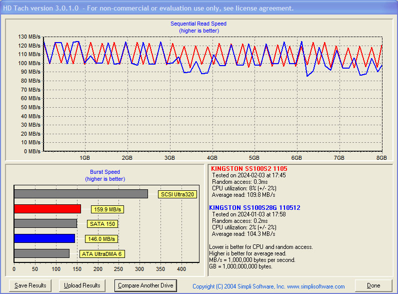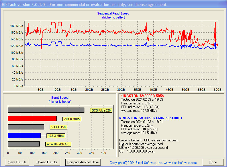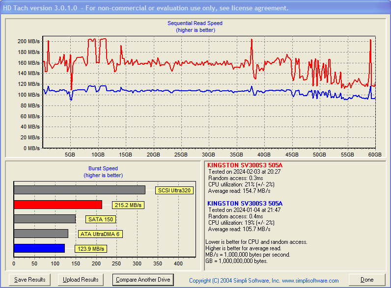 Kingston SSDNow V300 на 60 Гб судя по графику получил второе дыхание на более свежей платформе, а ведь стандарт SATA-II одинаковый для двух систем, вот что значит прогресс и оптимизация.