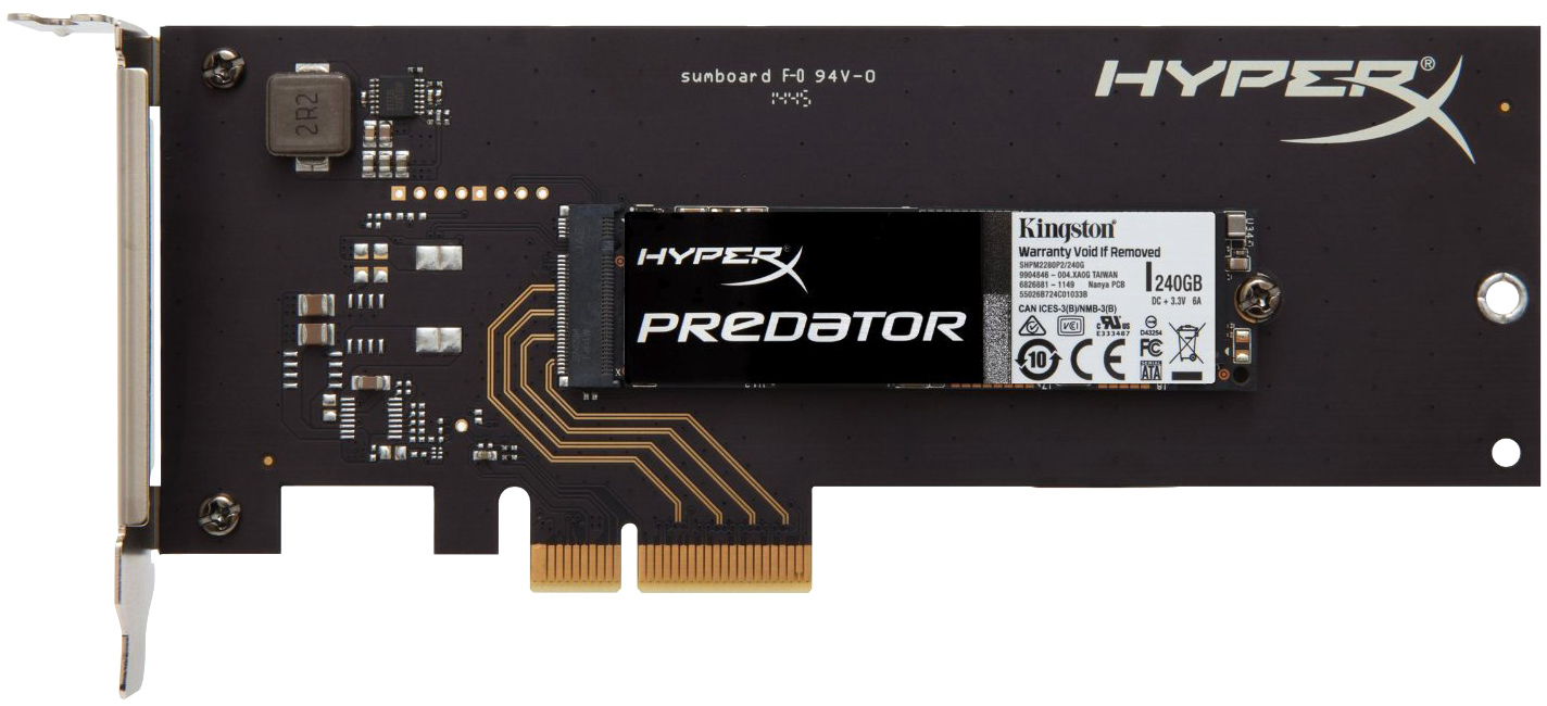 - Kingston HyperX Predator (SHPM2280P2H/240G) – 240 Гб, PCI-e x4 Gen.2;