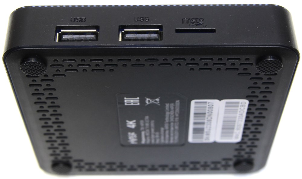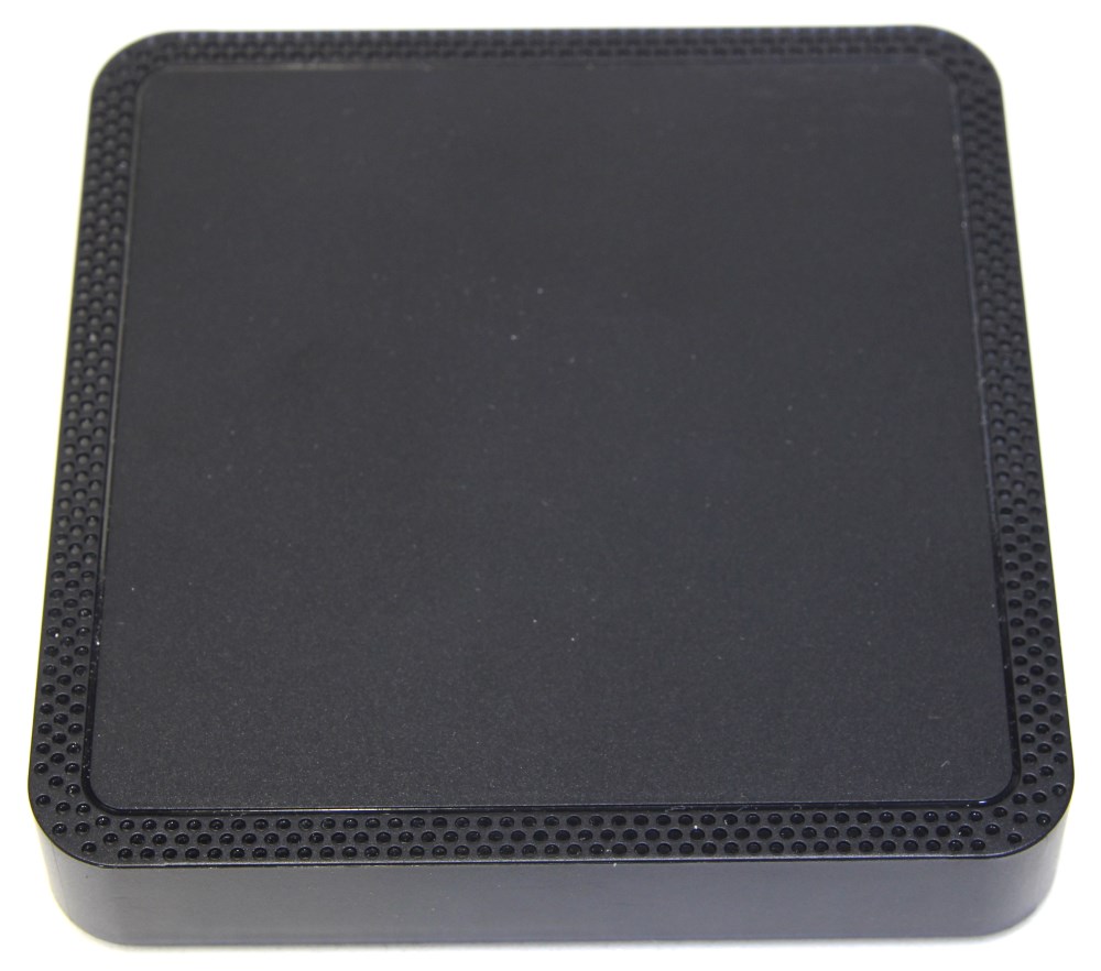 Медиаплеер достаточно компактный. Приблизительно 10 х 10 см и 1.5 см в толщину. По весу коробочка тоже очень лёгкая. Корпус изготовлен из пластика. Сверху и снизу предусмотрены вентиляционные отверстия для охлаждения.