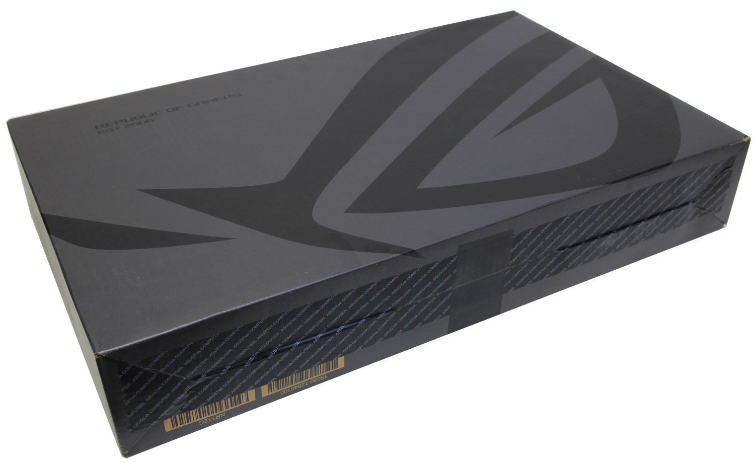 Ноутбук поставляется в крупной картонной коробке тёмно-серого цвета с крупным чёрным логотипом ROG. Нет ничего необычного в том, что производитель хочет как-то выделить устройство.