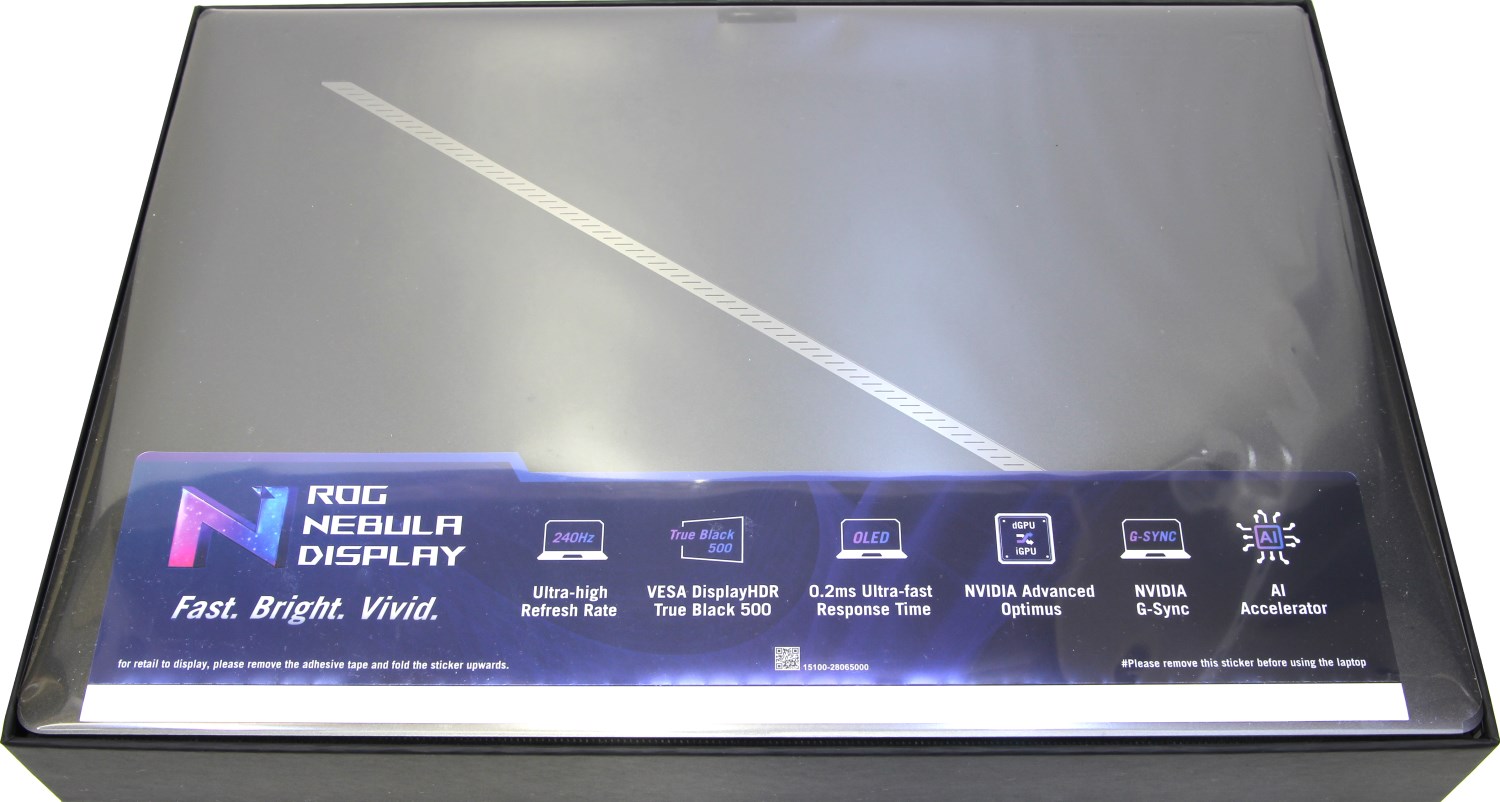 ROG Nebula Display — это стандарт дисплея, разработанный командой ASUS ROG. Цель стандарта — упростить работу как для партнеров, так и для пользователей при навигации по спецификациям панелей. ROG Nebula устанавливает минимальные требования к нескольким важным характеристикам панели, что упрощает выбор продуктов ROG, оснащенных дисплеями, которые предлагают наилучший возможный баланс с точки зрения скорости (частота обновления, время отклика), живости (точность цветопередачи, коэффициент контрастности), яркости, а также поддержку таких ключевых технологий, как G-Sync и Dolby Vision. Экран поддерживает охват цветового пространства DCI-P3 и может похвастать близким к кинематографическому качеством «картинки». Площадь поверхности экрана составляет 88,4%.