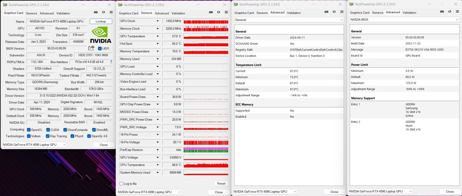 | Видеопроцессор | NVIDIA RTX 4090, (95W + 20W TGP), 16 ГБ; NVIDIA RTX 4080, (95W + 20W TGP), 12 ГБ; NVIDIA RTX 4070, (85W + 20W TGP), 8 ГБ; NVIDIA RTX 4060, (85W + 15W TGP), 8 ГБ; NVIDIA RTX 4050, (85W + 15W TGP), 6 ГБ; + MUX переключатель с поддержкой Advanced Optimus |