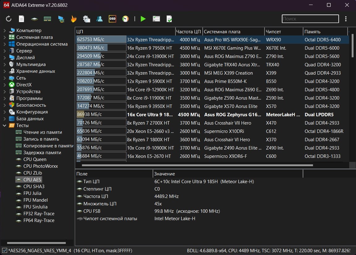 AIDA64 CPU AES: