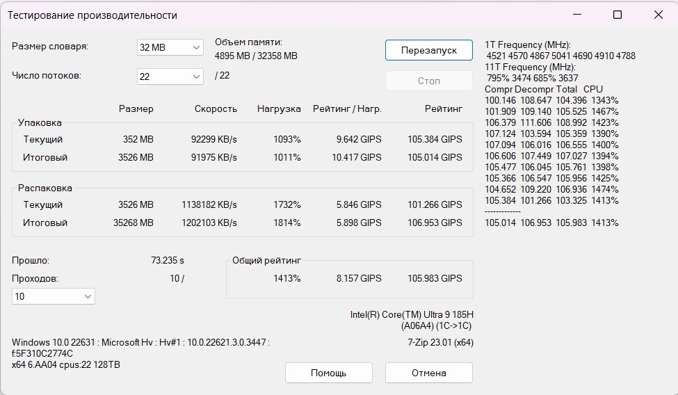 | Процессор | Intel Core Ultra 9 185H, 28 – 45 Вт стандартное значение TDP, 5.1 ГГц в режиме Boost, 16 ядер/22 потоков |