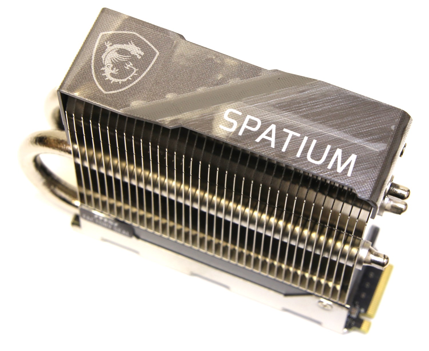 На нижней пластине устройства присутствует наклейка. Также сверху радиатора есть декоративная пластина с крупной надписью Spatium и логотипом MSI Gaming.