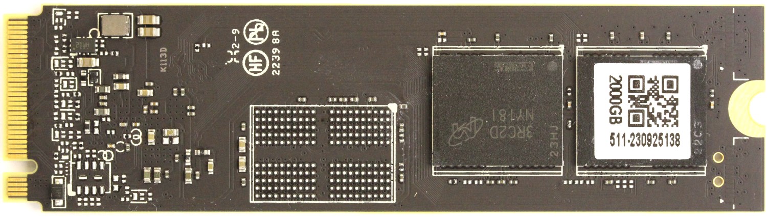 Если заглянуть в спецификации, то сразу бросается в глаза увеличение скорости каждого канала с 1600 МТ/с до 2400 МТ/с. Всего каналов осталось также – восемь. Ещё здесь мы видим буфер оперативной памяти LPDDR4 объёмом 4 Гб для 2 Тб версии, состоящий из одной микросхемы SKhynix, которая распаяна с одной стороны.