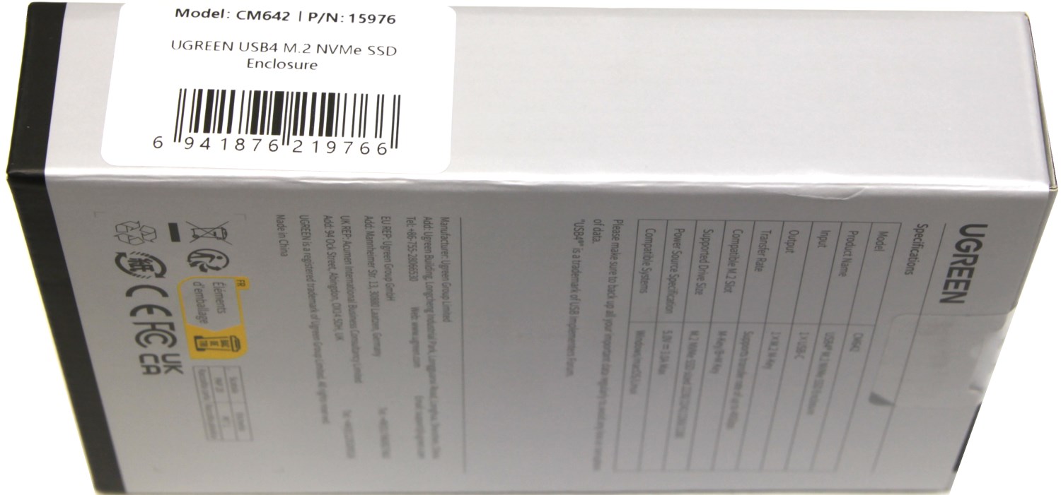 У разъёма USB Type-C есть ряд несомненных преимуществ и его потенциал пока не раскрыт. Например, коннектор можно устанавливать любой стороной и это достаточно важно. Ещё у него 24 контакта, по 12 на каждую сторону. Сейчас этот интерфейс остановился на скорости передачи данных 40 Гбит/с, для чего используются стандарты USB 4.0, а также Thunderbolt 3 и 4. Это очень похоже на значения интерфейса PCI-e Gen3 x4 (32 Гбит/с), а сегодня мейнстримом стал PCI-e Gen4 x4 (64 Гбит/с), что может напомнить о современных накопителях M.2. Это не значит, что раньше не было попыток организовать подключение накопителей. Например, кто-то может вспомнить про eSATA, но что-то не срослось. И вот начали появляться первые устройства для передачи данных по новому интерфейсу USB 4.0. Сегодня мы рассмотрим не какой-то готовый накопитель, а внешний контейнер для установки SSD M.2 устройства, чтобы обеспечить максимальную передачу данных на скорости до 40 Гбит/с. Это модель компании Ugreen, которая называется CM642.