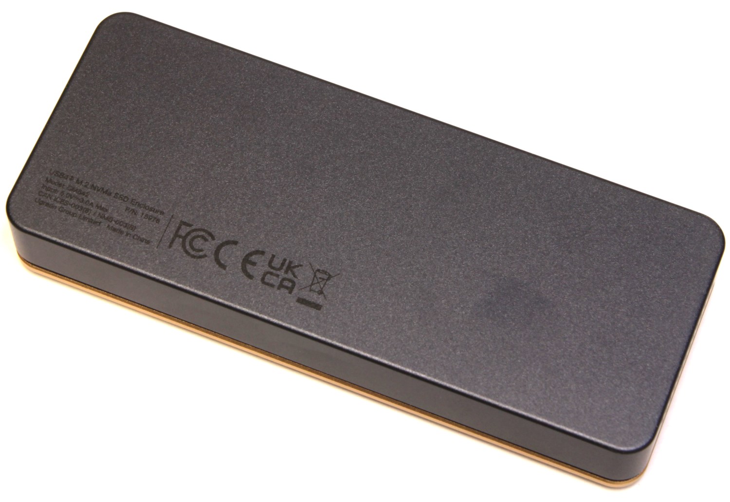 Я не стал разламывать защёлки, чтобы не повредить устройство, но известно, что с противоположной стороны материнской платы находится контроллер ASMedia ASM2464PD. По сути, это мост между интерфейсом PCI-e x4 Gen4 и USB 4.0/Thunderbolt. Чтобы получить максимальную скорость (~3500/3500 Мбайт/с), необходимо подключать комплектным или аналогичным кабелем к порту USB 4.0, Thunderbolt. При подключении к порту USB 3.1 скорость будет снижаться до предельно допустимых данного типа пропускной способности (~1000/1000 Мбайт/с), при подключении к порту USB 3.0, 3.1 Type-A - (~500/500 Мбайт/с).