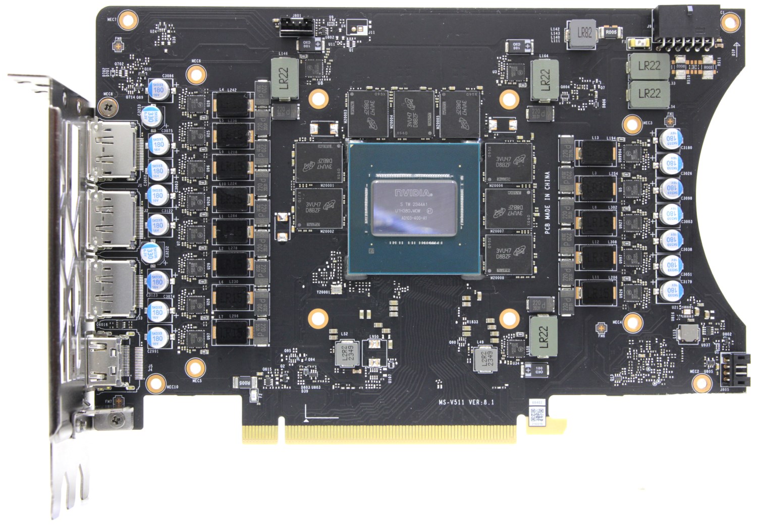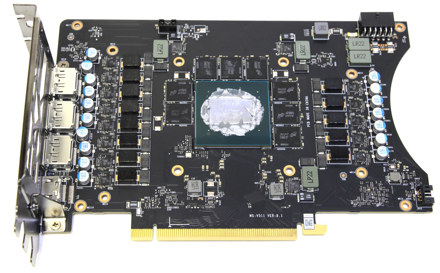 После демонтажа кулера, видно, что на плате больше не осталась никаких дополнительных пластин. В правой части на печатной плате есть вырез в форме дуги, который необходим для заднего вентилятора.