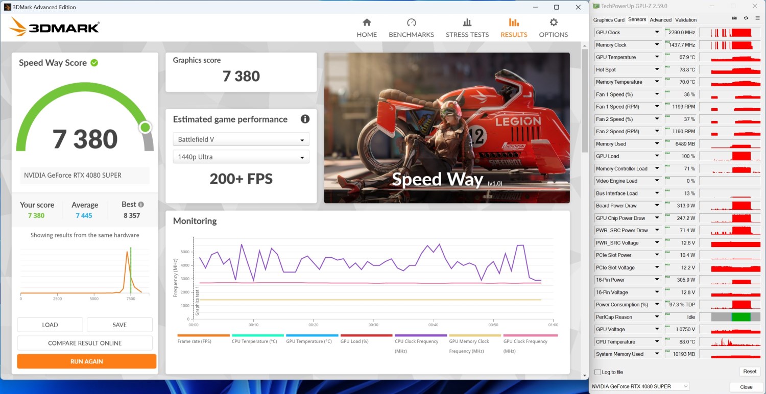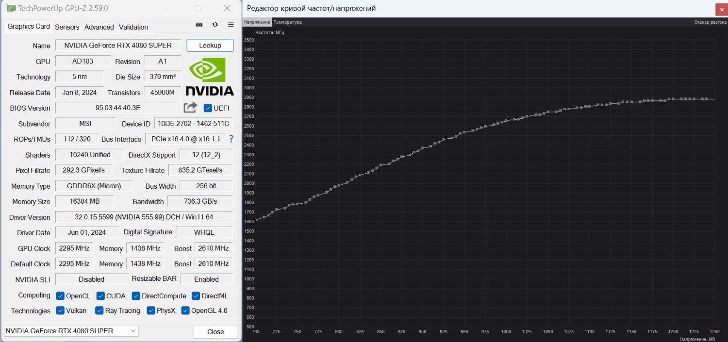 - Видеокарта: MSI GeForce RTX 4080 Super Expert 16 Гбайт (2295 / 2610/ 1438 МГц (ядро/boost/память));