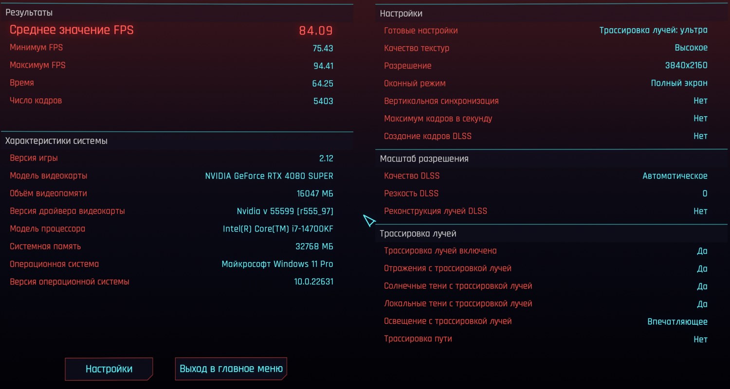 Cyberpunk 2077, 4K, трассировка ультра, DLSS выкл.;