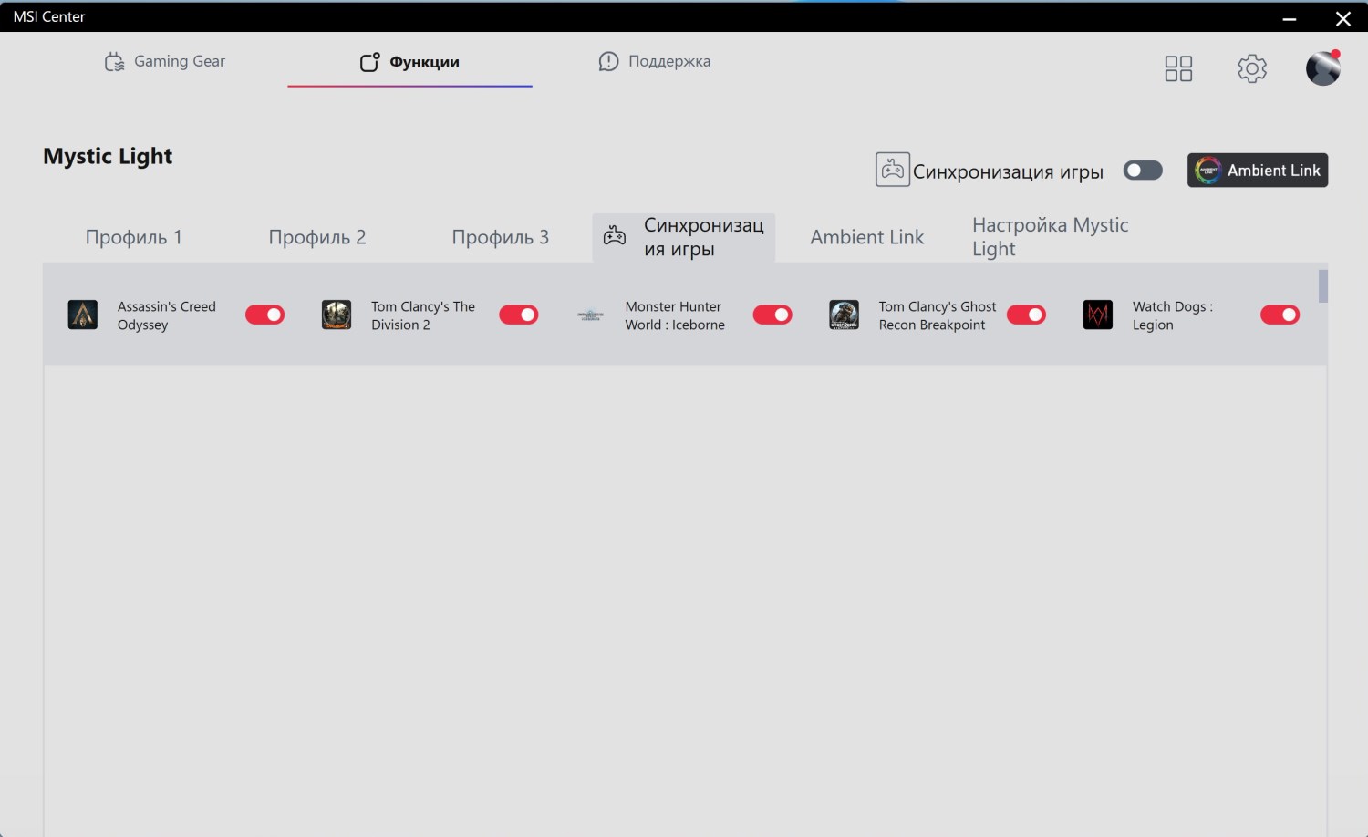 Есть возможность синхронизации с различными играми, а также поддержка технологии Ambien Light. Однако, игр которые её используют пока не так много.