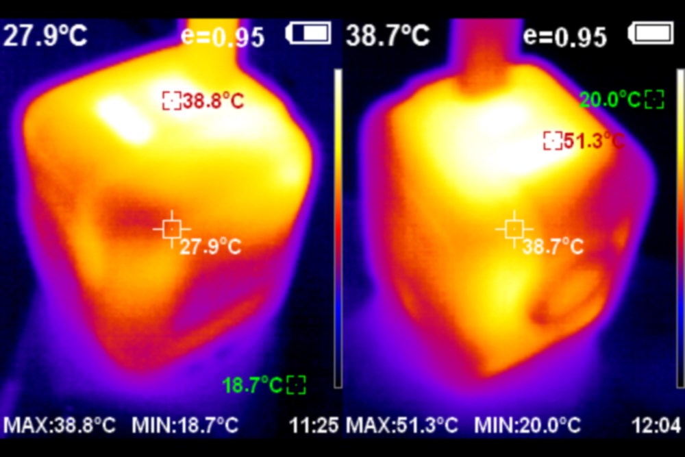 Нагрев во время максимальной нагрузки достаточно умеренный. Мне не удалось разогреть этот адаптер выше 52°C, хотя я старался и очень долго гонял его.