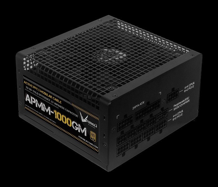 Поэтому сегодня хотелось бы рассмотреть блок питания, представленный другой фирмой, и я обратил своё внимание на новую модель компании Formula V Line, которая называется APMM-1000GM. До этого в лаборатории уже побывало несколько их блоков и вот теперь очередь дошла до настоящего золота, точнее до стандарта 80 Plus Gold.