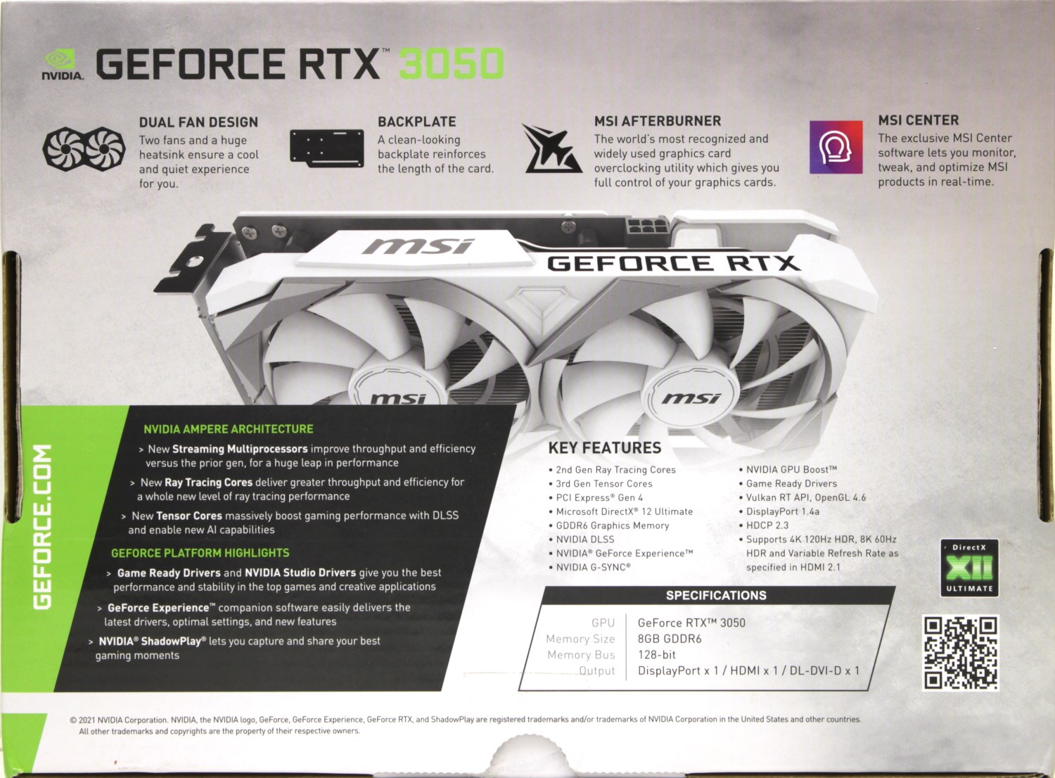 Обзор и тестирование видеокарты MSI GeForce RTX 3050 Ventus 2X XS White 8G OC